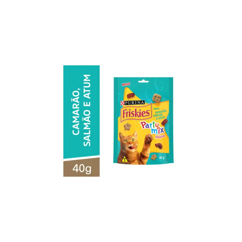 PETISCO FRISKIES PARTY MIX SABOR CAMARÃO, SALMÃO E ATUM PARA GATOS 40G